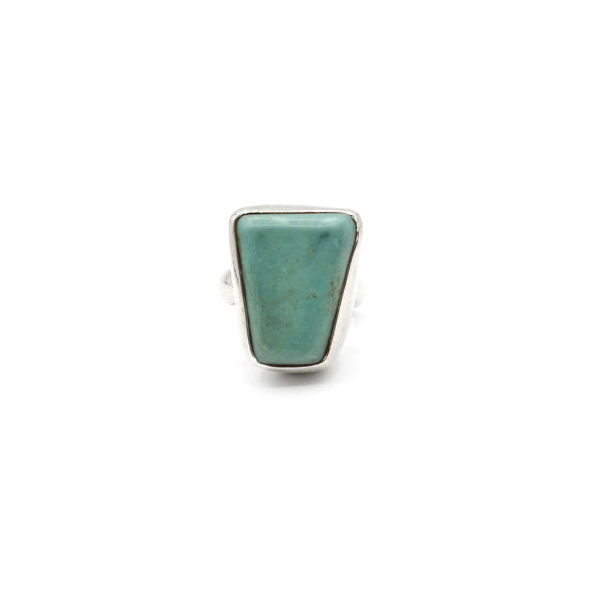 ANEL EM PRATA 925 COM UMA PEDRA EM FORMA DE TRAPÉZIO, DE TURQUEZA