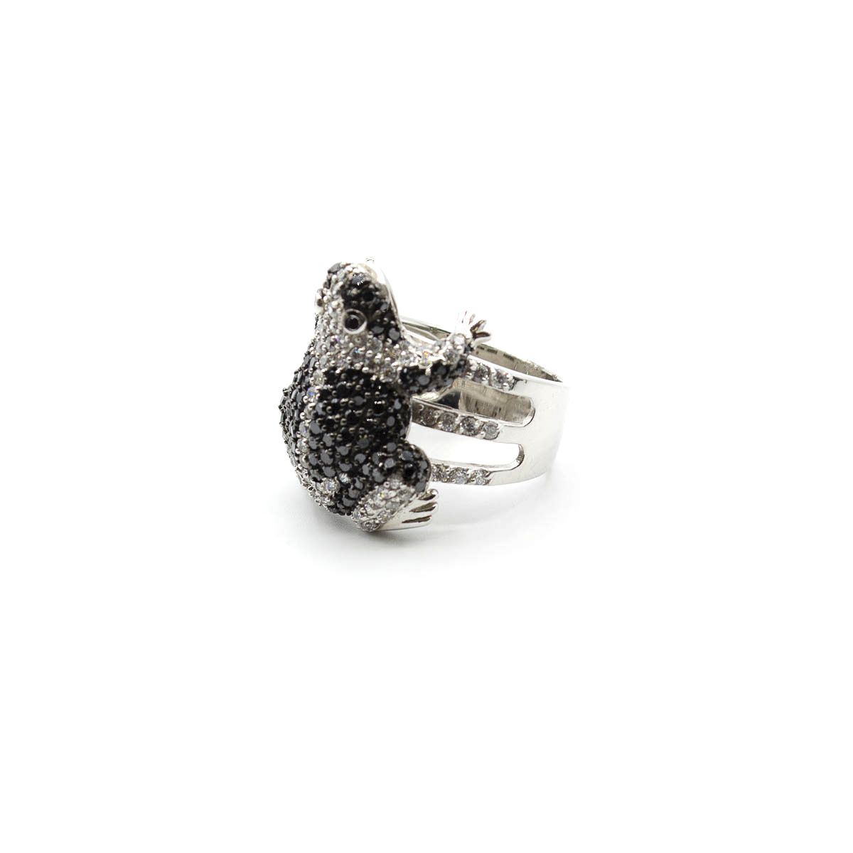 ANEL DE PRATA 925 COM UM SAPINHO PRETO E BRANCO EM CRISTAL