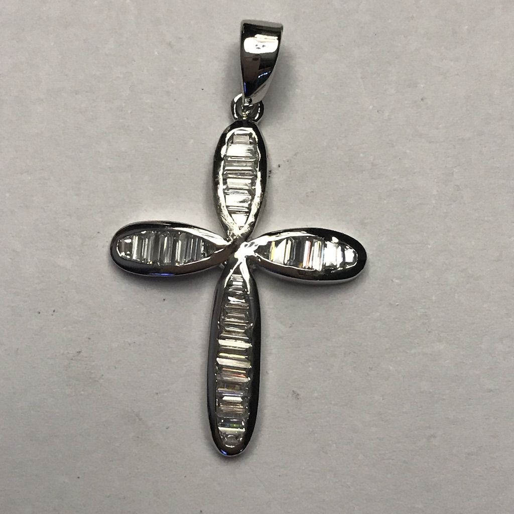 PINGENTE EM PRATA 925 NO FORMATO DE CRUZ COM ZIRCÔNIAS