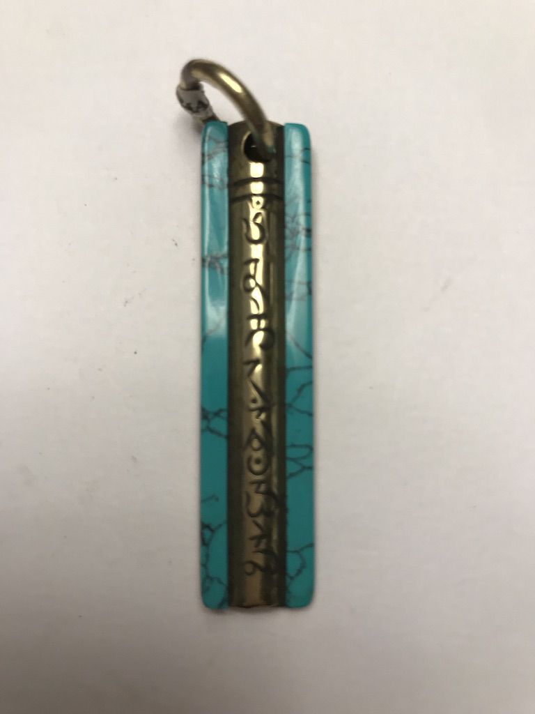 PINGENTE COM METAL DOURADO COMPRIDINHO, COM UMA PEDRA TURQUEZA